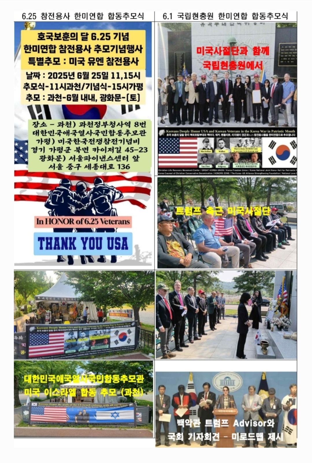 5. 6월 25일 미연합 참전용사 합동 추모 기념행사 참여 및 영상 송출