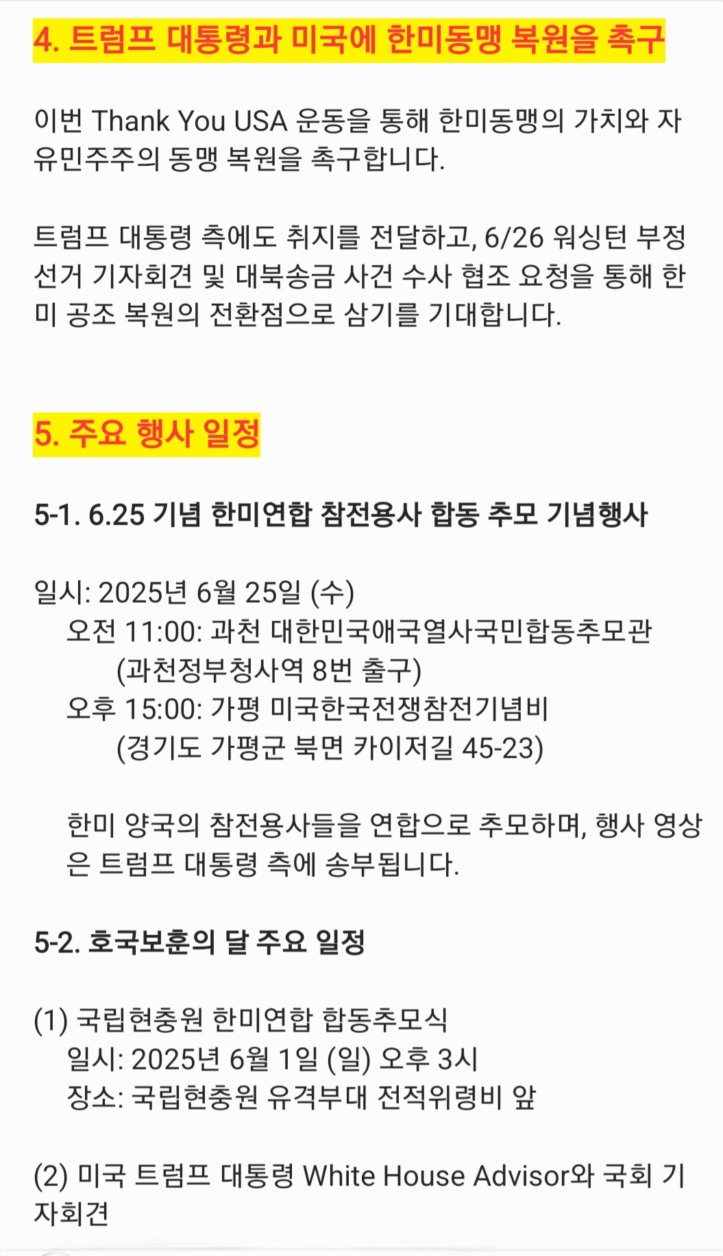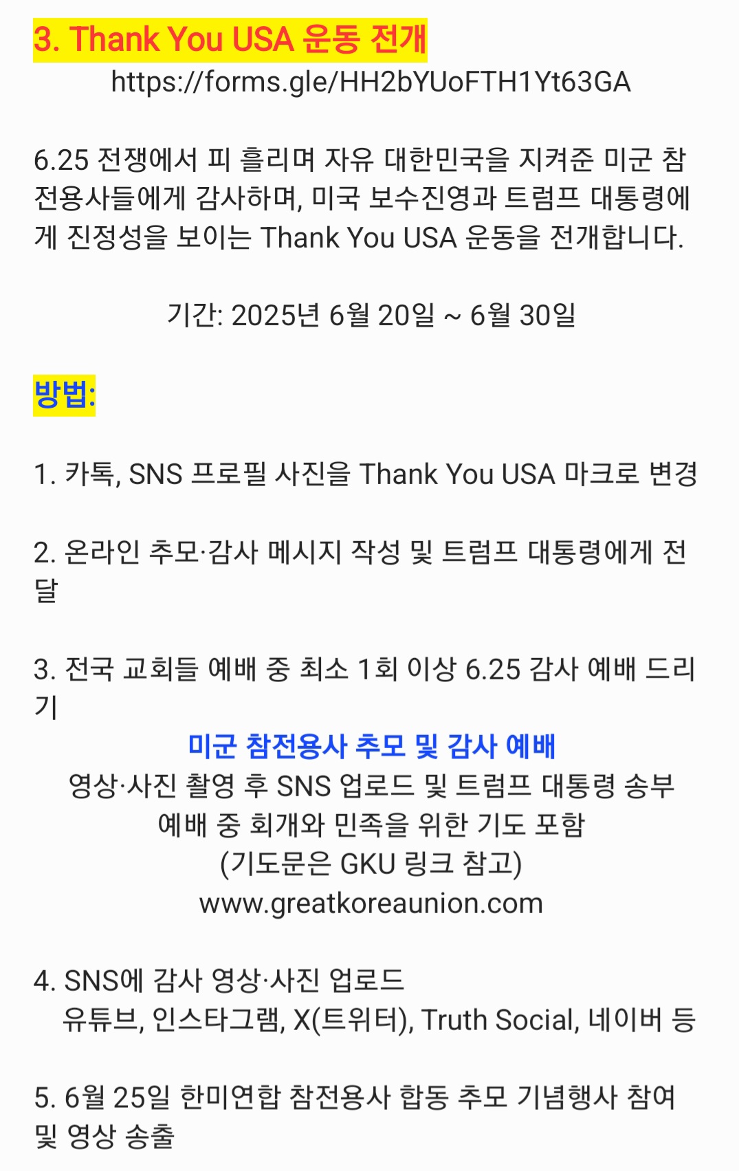 “ 6.25 기념 Thank You USA 운동을 통한 자유 대한민국 구하기 ”